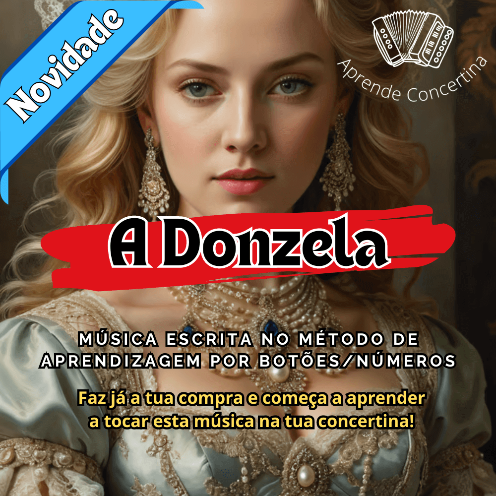 Já podes aprender a música A Donzela (Música do Fred Mota) na tua concertina, experimenta o método de aprendizagem por botões e começa a tocar as tuas músicas na concertina. Método para concertinas com vários esquemas e tonalidades.